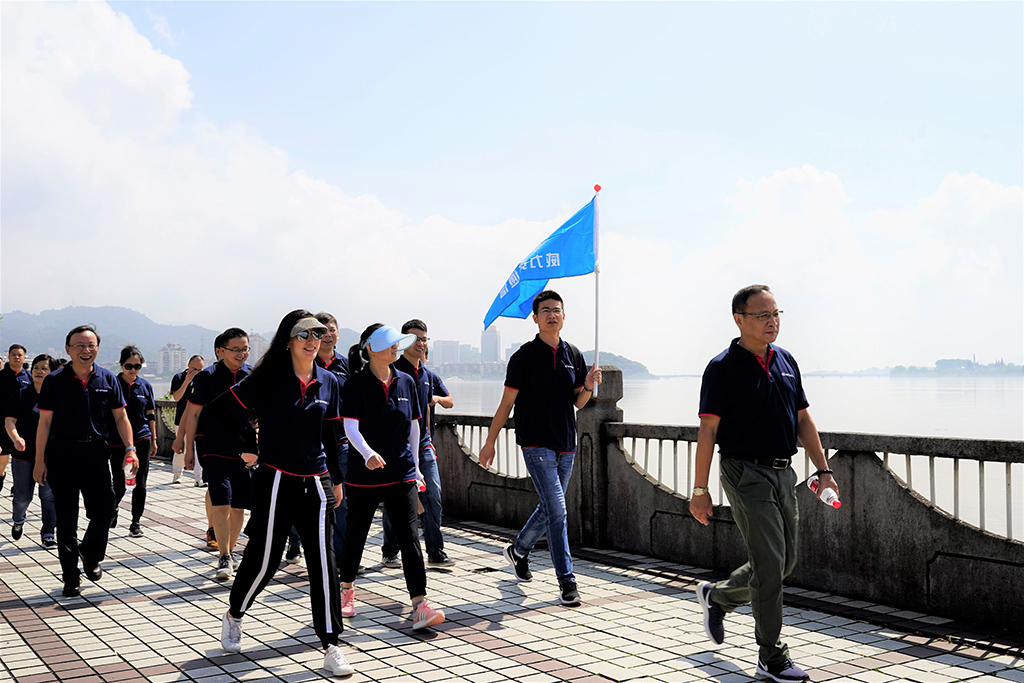 正式会议前,会务组精心组织了环富春江毅行的户外体能拉练活动。为了增加活动的竞争性,体现团结合作的精神,各与会代表分成四个小组进行团队比赛。美丽的富春江畔艳阳高照,大家成群结队、彼此鼓励、斗志昂扬地完成了10公里毅行路程,充分体现九游娱乐通信职工团队昂扬向上、锐意进取、勇于创新的精神。活动最后,由公司总经理李昊对表现突出的团体进行了颁奖。